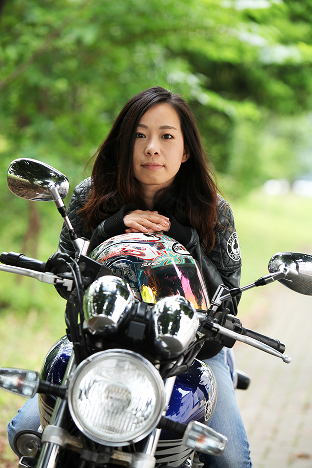 お蔭さまで連載GIRLS RIDERがスタートして1年を迎えることができました。これからも素敵な女性ライダーご紹介しますので、今後ともよろしくお願いします。さて、今回ご登場いただいた鈴木さんは東京在住、撮影インタビューは都内のレインボーブリッチが見える場所で行われました。小学生の頃、父親が運転するスクーターに乗ったことがあり、その時にバイクの楽しさを感じたそうです。そしていつか乗りたいと思っていたバイクの免許を7年前に取得、その2年後には大型二輪免許も取得しました。親しい仲間と一緒に走るときも好きだが、ひとりで自由に走り回るのも好きで4年前に北海道をソロツーリング。バイク乗りが経営する宿では旅ライダーとの出会い、風景では宗谷丘陵とエサヌカ線が印象に残っているそうです。基本的に体を動かすのが好きで趣味はダイビング、海外では特にマレーシアのシパダンの海が言葉にできないくらい美しかったとか。海外旅行ではいつか南米のウユニ塩湖へ行ってみたいそうです。小柄な体でバイクを自由に操る姿は、とても魅力的でした。これからもアクティブにいろんなことを楽しんでください。今日はありがとうございました!!
