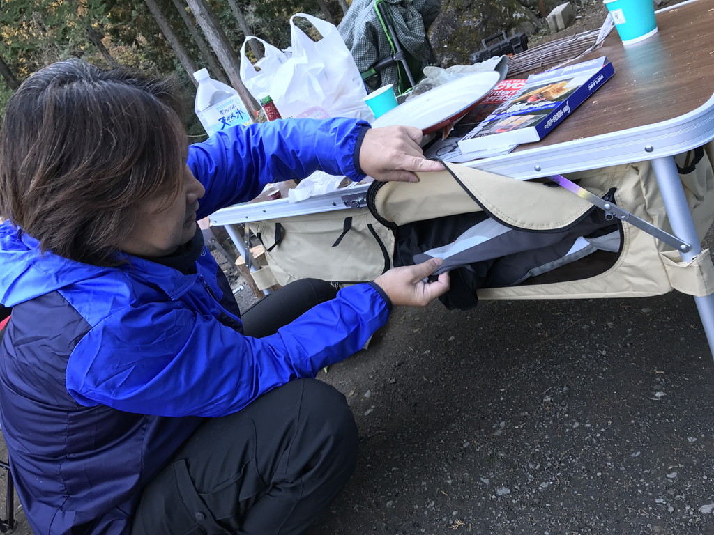 撤収は、設営時の逆パターンの行動で撤収します。この撤収時に感動したのは、やはりテント(ライダーズバイクインテント)です。設営時と同じくらい簡単に一瞬にして畳めてしまうのです。さらに、余裕のある収納袋にインしてベルトで締め付けるだけ! 20数年前は、畳んだテントを袋に入れるだけでも苦労していたような気がしますが...。