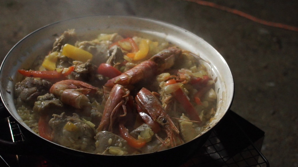 この日のメニューは、シャレオツなパエリア、暖まるキムチ鍋、デザートの焼き芋など。これらを肴にして、ビールや赤霧島がススミます! これまでに自分が行ってきたキャンプでの食事の多くは、温めたりお湯を掛けたりして食べられる食材(?)が多かったので、このような豪勢で本格的なキャンプ料理に大感激です! まさに"わがままで贅沢"なキャンプですね〜! さらに贅沢な事にCAZUオートキャンプ場の使い放題(500円/ひとり)の薪を潤沢に使って、焚き火の火を絶やす事無く快適な夜を過ごせました。