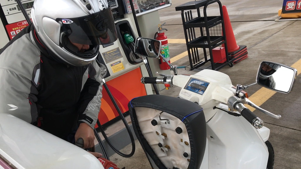 ゴールする前に燃費計測のため給油を行いました。今回の走行距離は約100km。ガソリン給油量は3.5リットルで、燃費は約28.6km/lでした。ずっと全開走行となってしまっていたのですが、ジャイロアップにしては悪い数字ではなさそうです。