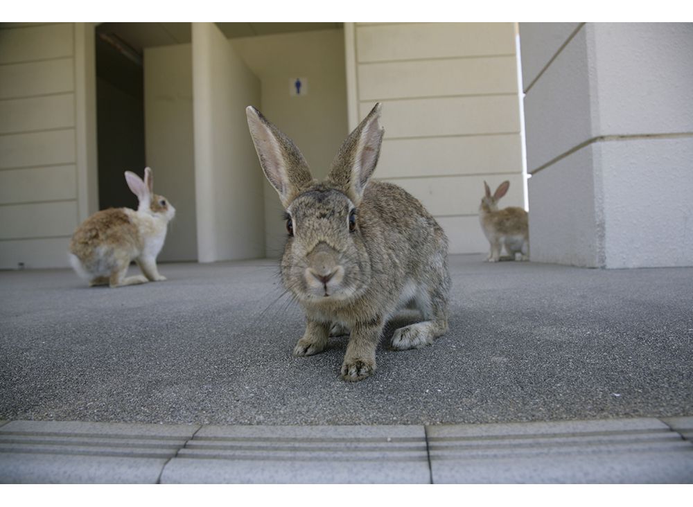 近年、外国人観光客に人気なのが「うさぎ島」こと大久野島。船で島に上陸すると約700羽といわれる野生のうさぎが出迎えてくれる。これがとてもかわいい。戦時中はこの島で毒ガスを製造していたことから「地図から消された島」となった。その当時の施設の跡がいくつか残っている