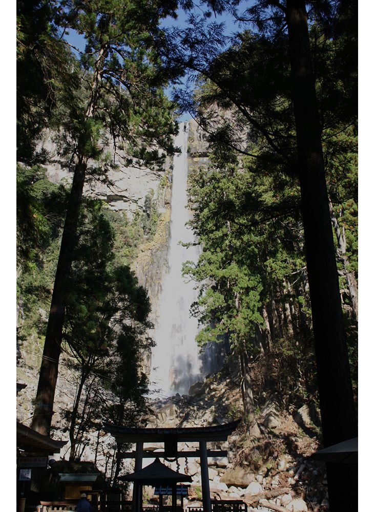落差133m、一段の滝としては日本一といわれる那智大滝。滝見台に立つと、崖の上から勢いよく流れ落ちる滝の迫力に圧倒される。那智山一帯は自然信仰の聖地で、大滝そのものが御神体であり、那智山中にある48の滝は瀧篭修行の行場となっている(那智四十八滝と呼ばれている)。