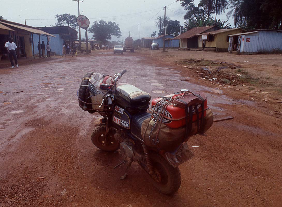 その後も毎日のように雨に降られた、半月以上雨具を着続けている。カメルーンに入国すると、道はドロドロの悪路に変わった。さらにホテルも名ばかりで、照明はアルコールランプ、シャワーもバケツに変わった。もちろんエアコンもない。国境ひとつでここまで変わるのは初めての体験だった。
