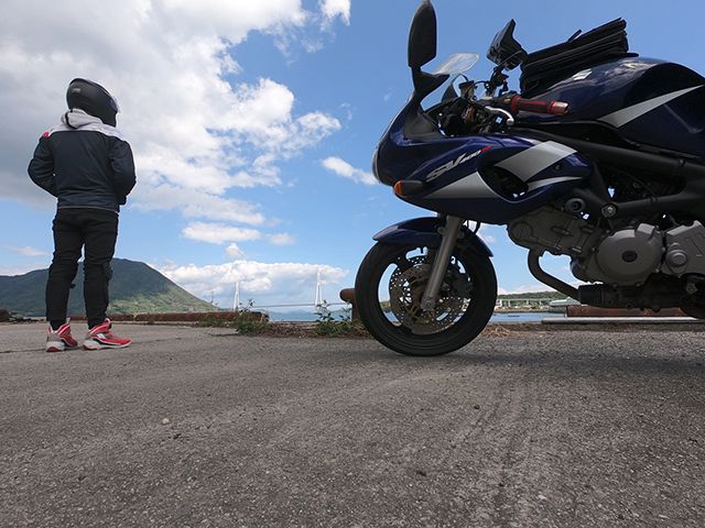 子供の頃、バイクは怖い人やヤンキーが乗っていて、ただただうるさく迷惑だと思うぐらいマイナスイメージでした(笑)。それが大学生のとき、バイト先の先輩のバイクの後ろに乗せてもらい、急加速を体感。「なんだっ、この刺激的な乗り物わっ!!」全身に電気がビビッと走り、バイクの虜に。すぐにバイクに乗ろうと決めた。その後、普通自動二輪免許を取得、選んだバイクは400ccの中で一番デザインがカッコイイと感じたSUZUKIのSV400Sだった。