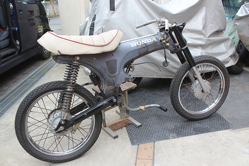 ダックス70のフレームとシート、それにハーネスを用意しました。まずはこれにCD系の足周りを付けていこうと思います。シートはもっと薄いのにしたいのですが、今は社外で良いのが出ていないんですよねー。