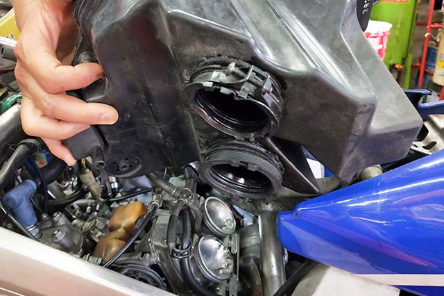 あとは付いていたように元に戻せばOK。キャブでもエアクリーナーの詰まりでもないのに「吸気系の不調が治らない!」なんてときは一度コネクティングチューブをチェックしてみるといいだろう。なんにしろ、キャブに装着するときにはきちんと挿入されているかを確認してからバンドを締めるようにしたい。