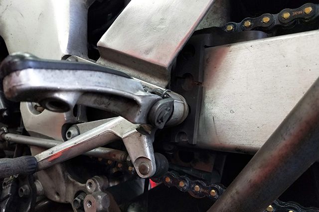 まだ大丈夫と思っていても減っているのがチェーンスライダー。これも旧車では車種専用設計が多いので、新品が出るうちに購入しておくのが吉。ちなみにNSR250Rのチェーンスライダーは海外製のリプロ品も出ているが、ゴム製品はどこまで耐久性があるのかわからないため、やはり純正に勝るものはない。
