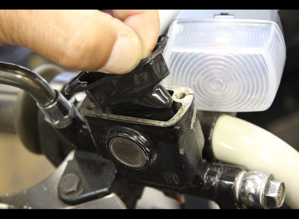 今回はフルード交換もするのでマスターシリンダーの蓋を外して(蓋を止めているプラスねじが固着していると非常に外しにくい場合もある)、ダイヤフラムも取り除きます。ちなみにブレーキ関連をイジるときは自分の車両だけ。他人の車両を触ることができるのは有資格者だけです。
