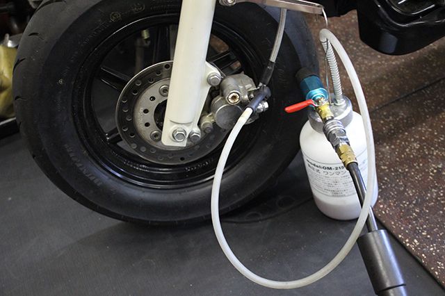 DOT規格が適合するブレーキフルードを入れます。なお、DOT規格に適合していないブレーキフルードを長期間使用し続けると、周辺部品の腐食が早くなったり作動性が悪くなる恐れがありますからね。