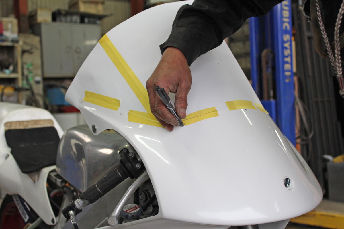もし紙のサイズが足りなければマスキングテープなどで合体させて大きくして使えばOK。なお、紙を当てる時はカウルの内側になるようにして貼ることもポイントです。