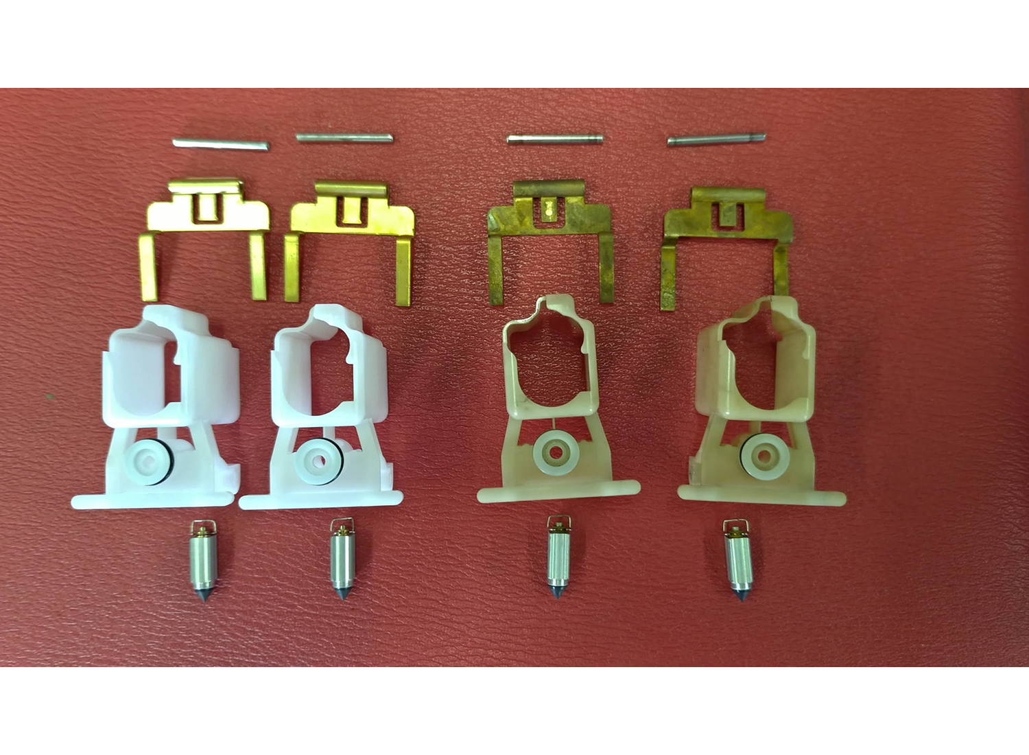 フロートピンやバルブシートは見た目に変わりがないように見えますが、やはり約30年も経過しているので減っている可能性は高いため交換です。右側の古いバルブシートにはフロートバルブが当たる部分が減っているのが分かります。こういった些細な減りもオーバーフローの原因にもなりますからね