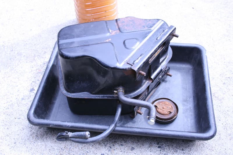 前回で無事にエンジンがかかってくれたのはラッキーでした。次はガチガチに固まりまくっている各部を動くようにしていきます。まずは時間が掛かるガソリンタンク内部のサビ取りからスタートしていきますよ!