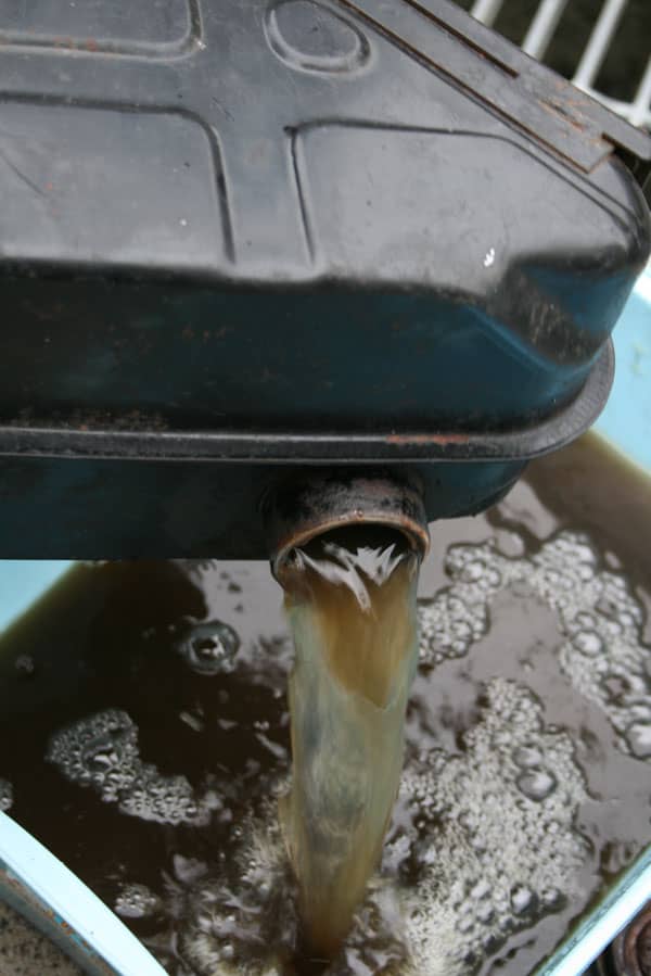 液体を出してみれば凄い色になっています。もう真っ黒。中のサビは当社比80パーセントほどは落ちています。でも給油口までいっぱい入れていなかったのはちょっと失敗。使用した「花咲かG タンク・クリーナー」は濾せばもう一度使えるかなと思ったのですが、かなり真っ黒だったのでこれはまた別のものに使うことにします。