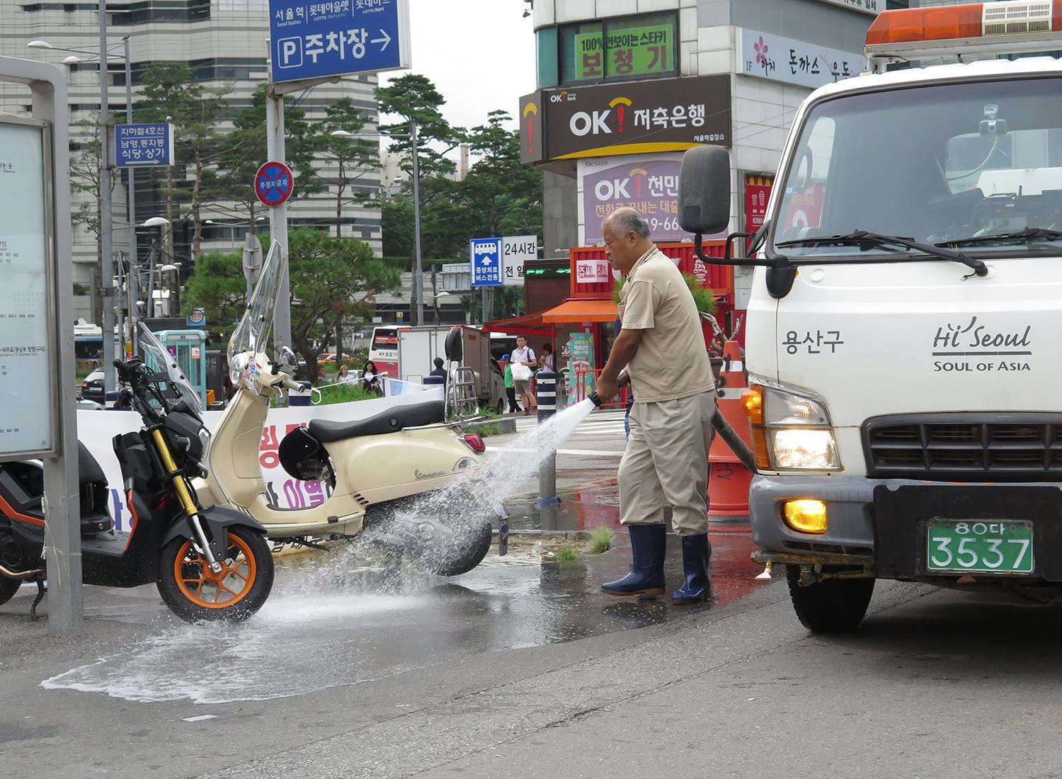 なかなかにワイルドなソウル駅前の清掃風景だった!?