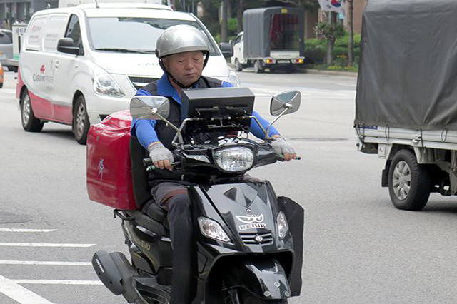 今度はソウル市内で見かけた働くバイクをご紹介します。主に運搬で利用するケースが多いように感じましたが、フットワークの良さからか、働くオートバイを良く見かけました。積載時の荷重を考慮した補助スタンドやダブルスタンドは、韓国の働くオートバイにとって不可欠なようです。